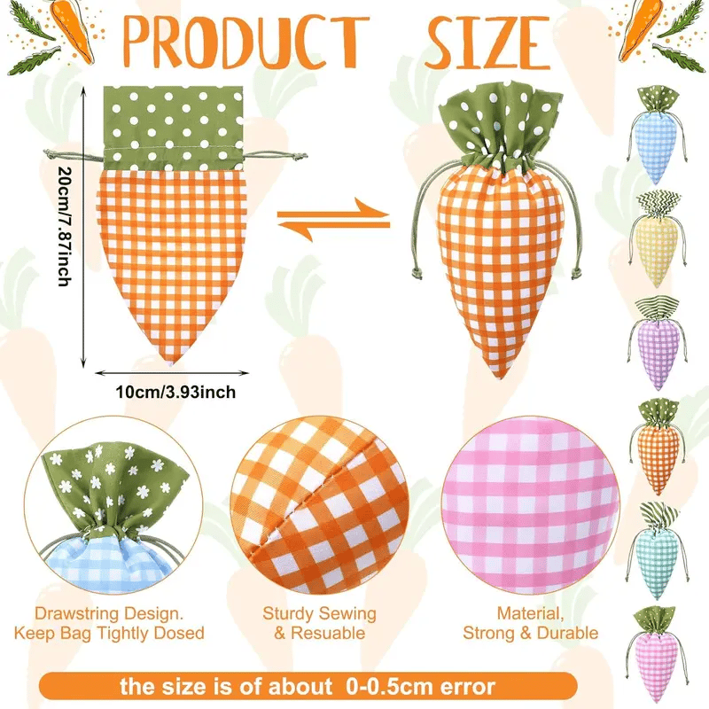 🎉 Easter Carrot Goodie Bags Fabric Drawstring Candy Bags