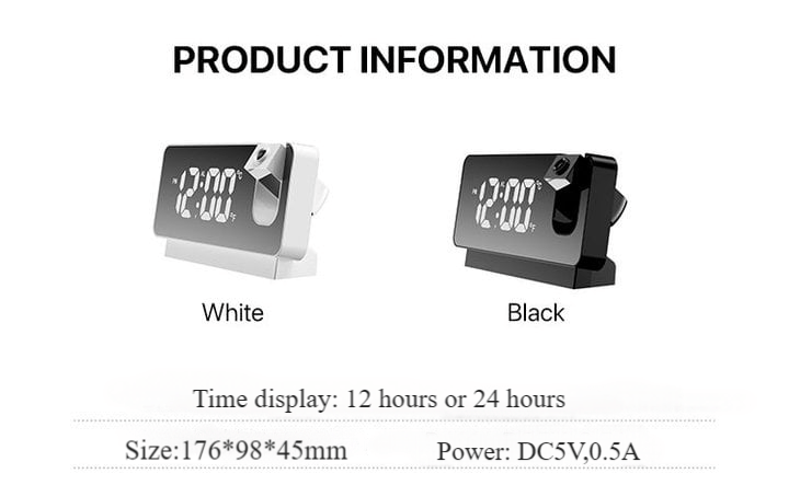 Multi-functional Projection Digital Alarm Clock with Projector, 7.3'' Larg LED Display, Dual Alarms,USB Charger to Suit Your Needs,A perfect choice for you to be aware of the time in the bedroom, kitchen and office. It is more than a clock. More functions cater to your aspiration for a better life.