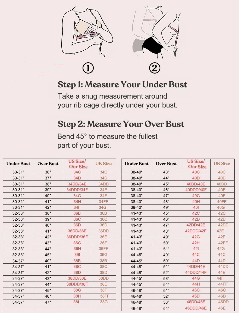 If you're between sizes, we highly recommend sizing up to avoid any discomfort or compression in the bust area. This ensures that your breasts are supported and comfortably contained throughout the day.