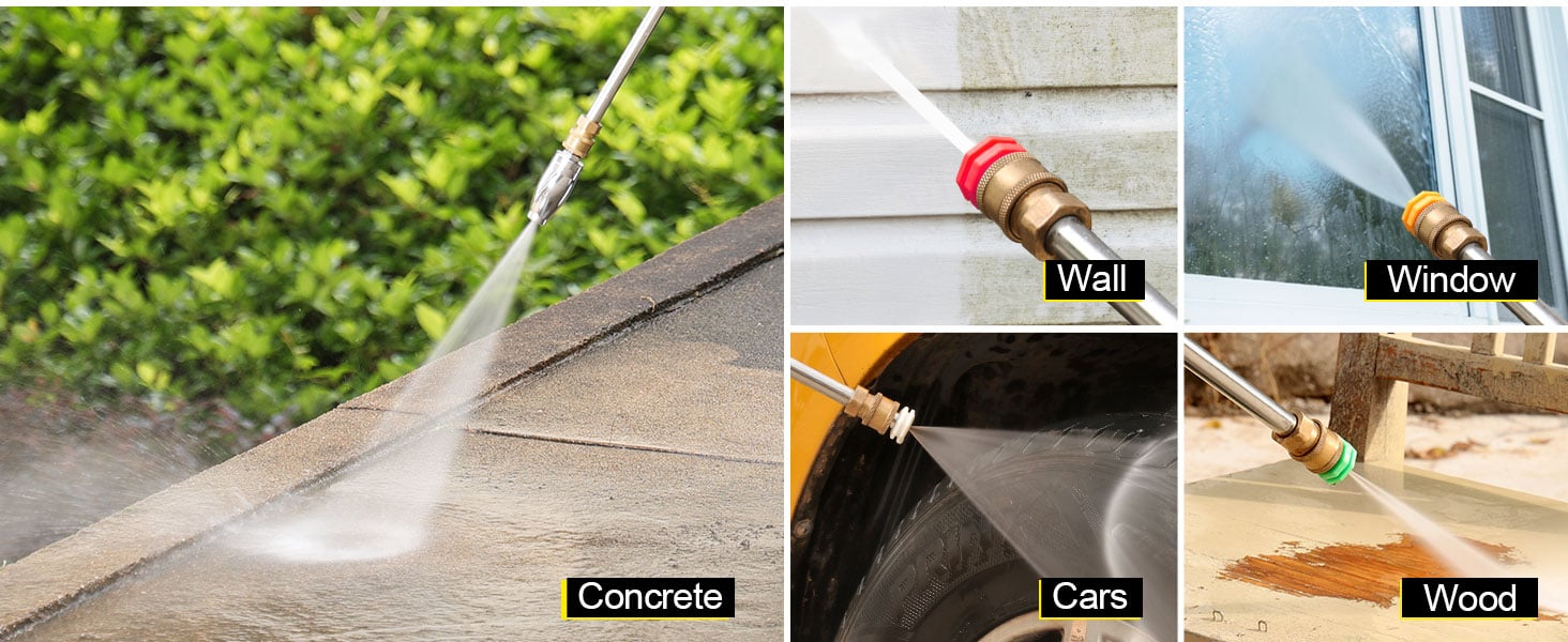 【Widely Applicable】Our turbo nozzle is very suitable for removing stubborn dirt, dirt, and rust. Very suitable for cleaning dirty bricks, concrete, metal or plastic cans, cleaning ships, cleaning dirty garage floors, peeling paint off the exterior of wood, and removing soil and clay from highways and construction equipment.