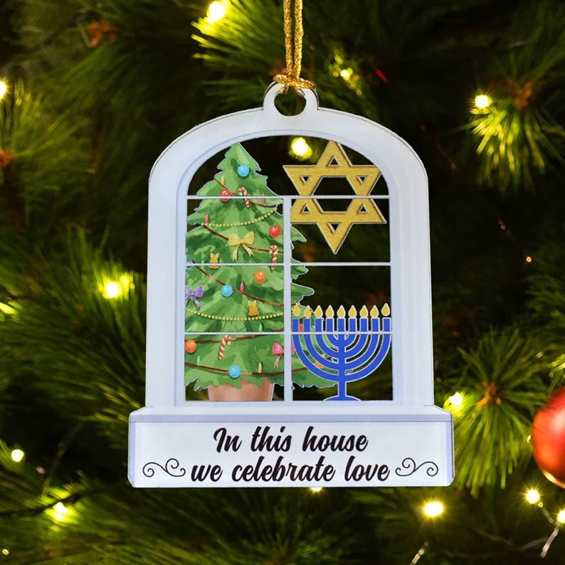 ⭐Introducing our fabulous Christmas Hanukkah Acrylic Ornament, the perfect gift for blended families celebrating the joyous occasion of Merry Chrismukkah!